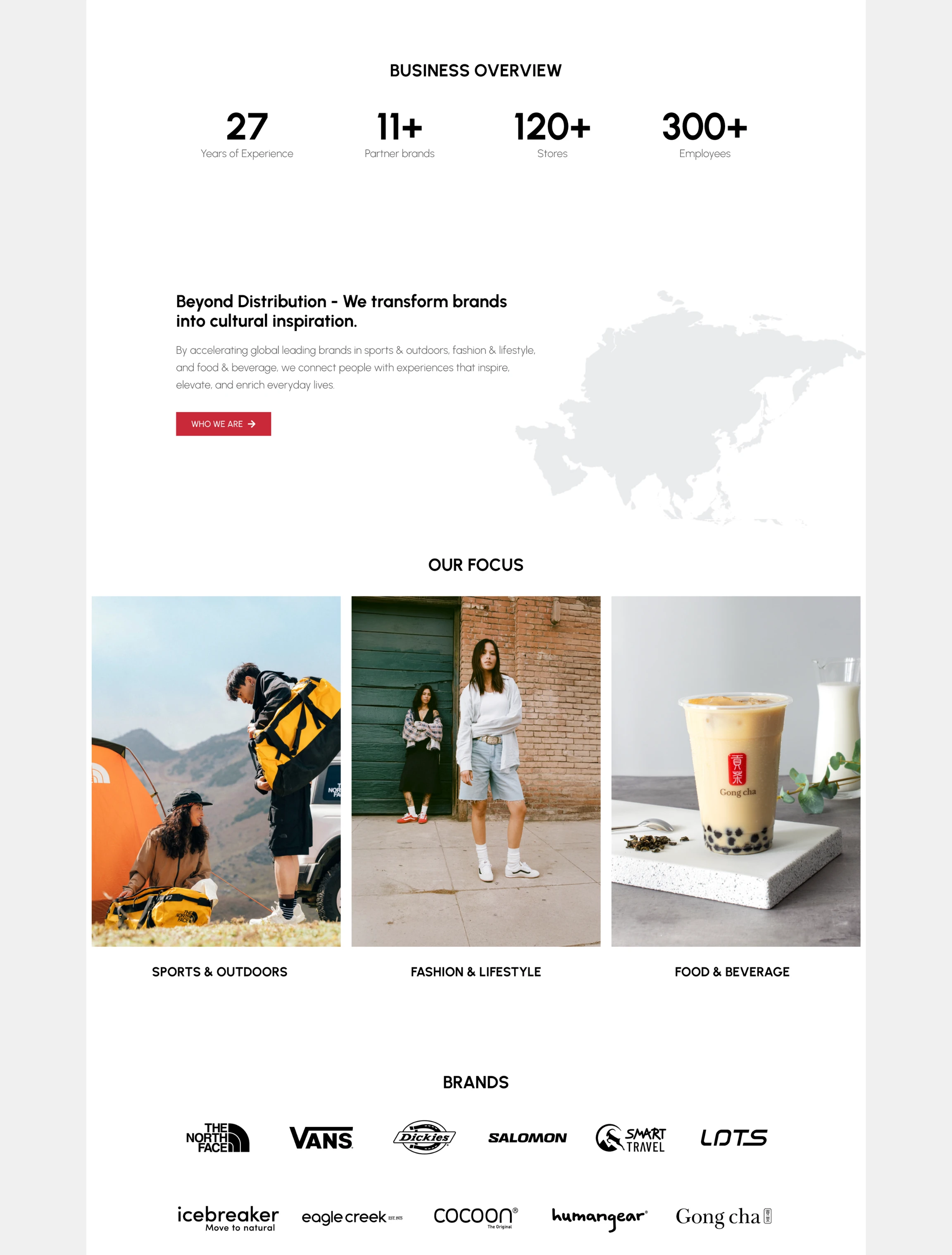 - Presenting a diverse portfolio of international brands across multiple categories (Sports & Outdoors, Fashion & Lifestyle, Food & Beverage) under one unified and strong corporate identity.